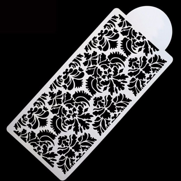 ELEGANTE STENCIL FANTASIA BAROCCO ADATTO PER DECORARE CON LA GHIACCIA REALE E AEROGRAFO TORTE E BISCOTTI.si fissa lo stencil alla torta ricoperta in pasta di zucchero con degli spillini e con una spatola di lato spalmare una piccola quantita’di ghiaccia o crema al burro fino alla fine dello stencil eliminando l’eccesso poi togliere delicatamente lo stencil.